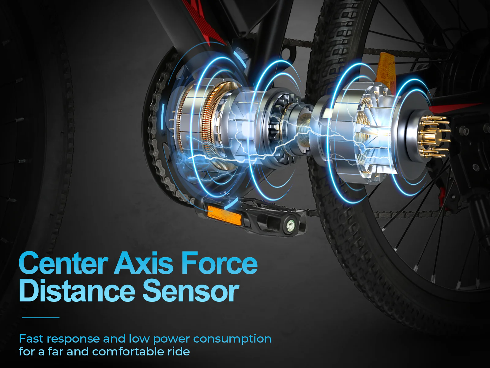 Detekcija signala obrtnog momenta pedale detektovanjem deformacije metalne čaure. Brži odziv i manja potrošnja energije za dalju i udobnu vožnju.